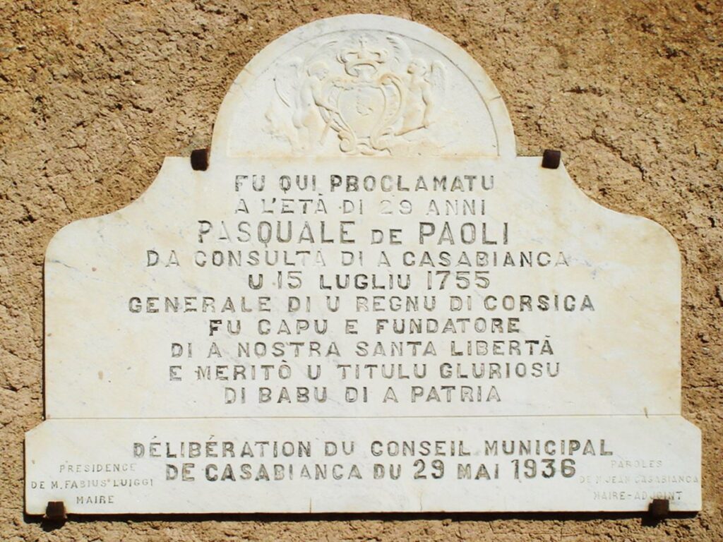 - Image intégrée : Plaque commémorative du couvent Saint-Antoine de Casabianca, photographie personnelle de Léon Chelli (2022). Lieu symbolique où Paoli fut proclamé Général de la Nation corse par la Consulta le 15 juillet 1755.
